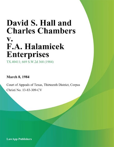 (DOWNLOAD) "David S. Hall and Charles Chambers v. F.A. Halamicek Enterprises" by Thirteenth District, Corpus Christi Court of Appeals of Texas ~ Book PDF Kindle ePub Free